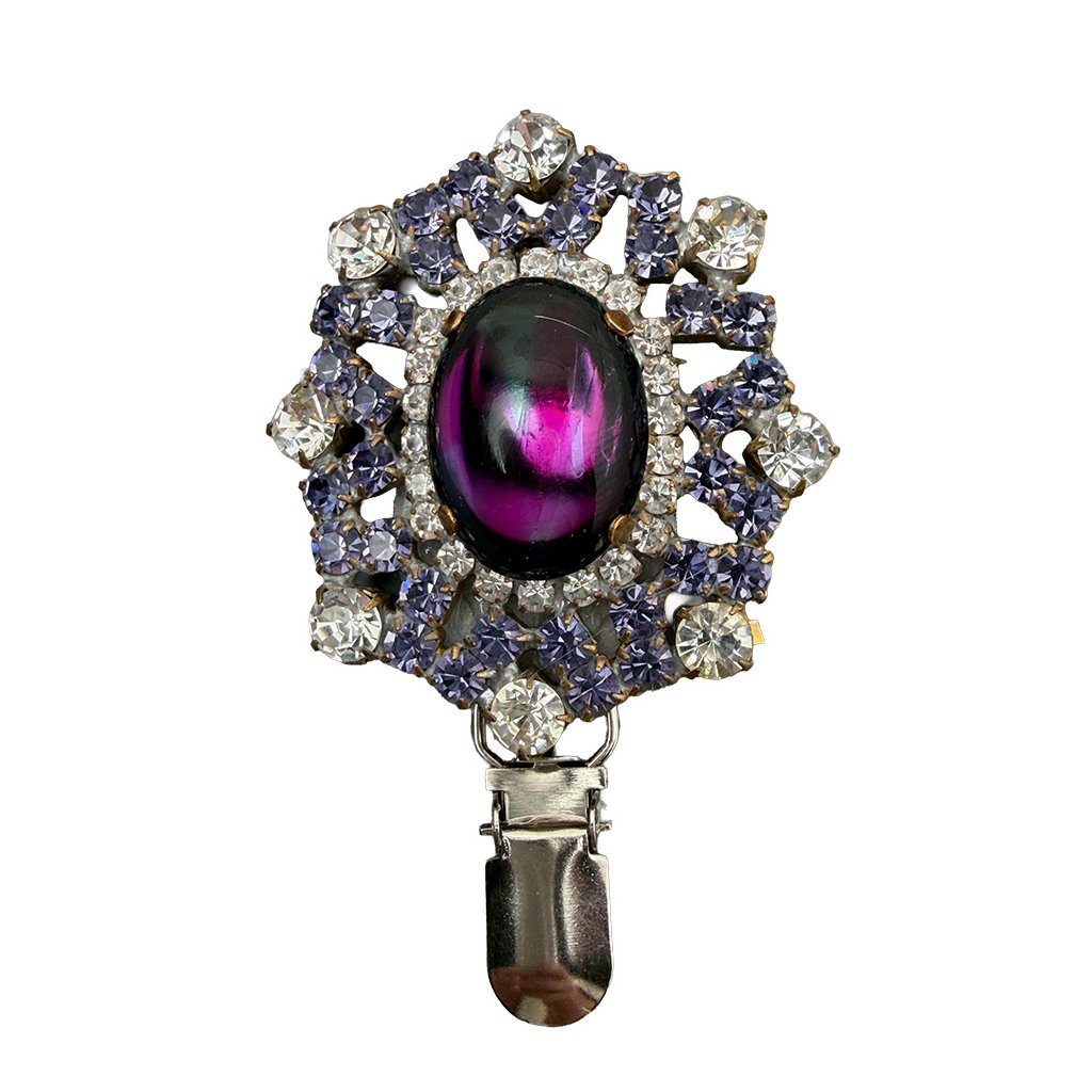 Brož s fialovým oválným kabošonem