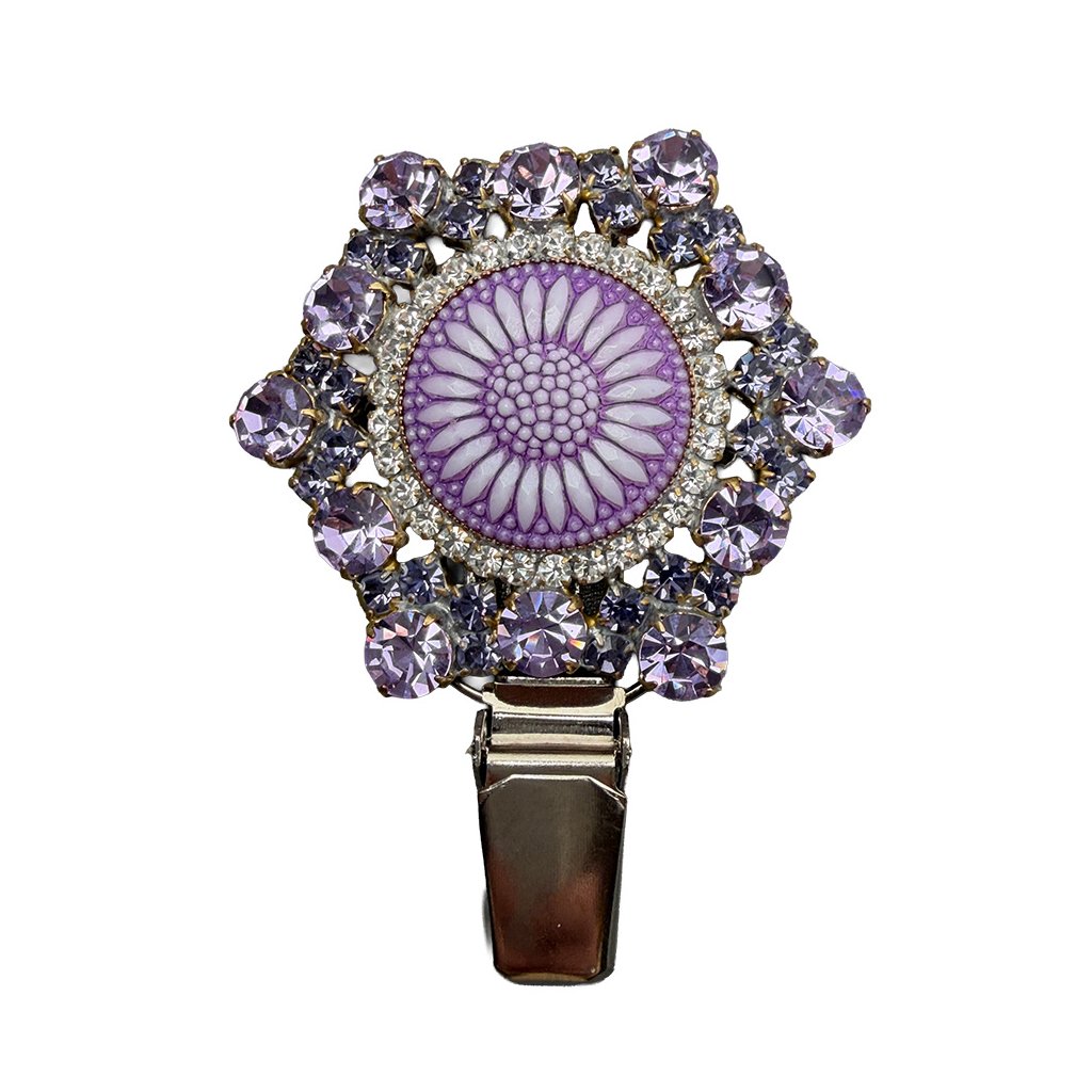 Nová elegantní brož s kytičkovým středem. Brož je vytvořena z původních skleněných kamenů tradiční jablonecké výroby. Jde o profesionální řemeslnou výrobu s barevnou povrchovou úpravou kovu. Z důvodu cenové dostupnosti bez finální povrchové galvanizace. Brož je dodatečně upravena pro potřeby využití v kruhu.