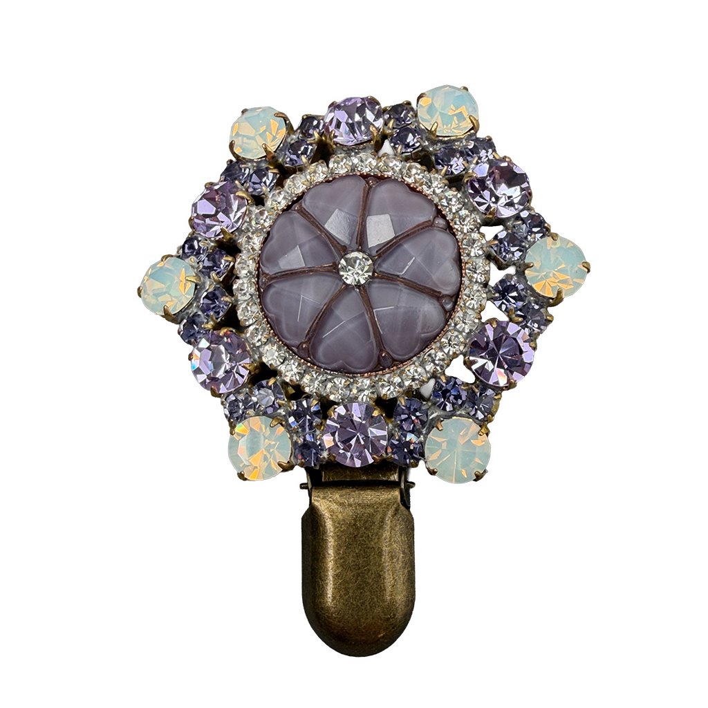 Nová elegantní brož s květinovým středem. Brož je vytvořena z původních skleněných kamenů tradiční jablonecké výroby. Jde o profesionální řemeslnou výrobu s barevnou povrchovou úpravou kovu. Z důvodu cenové dostupnosti bez finální povrchové galvanizace. Brož je dodatečně upravena pro potřeby využití v kruhu.