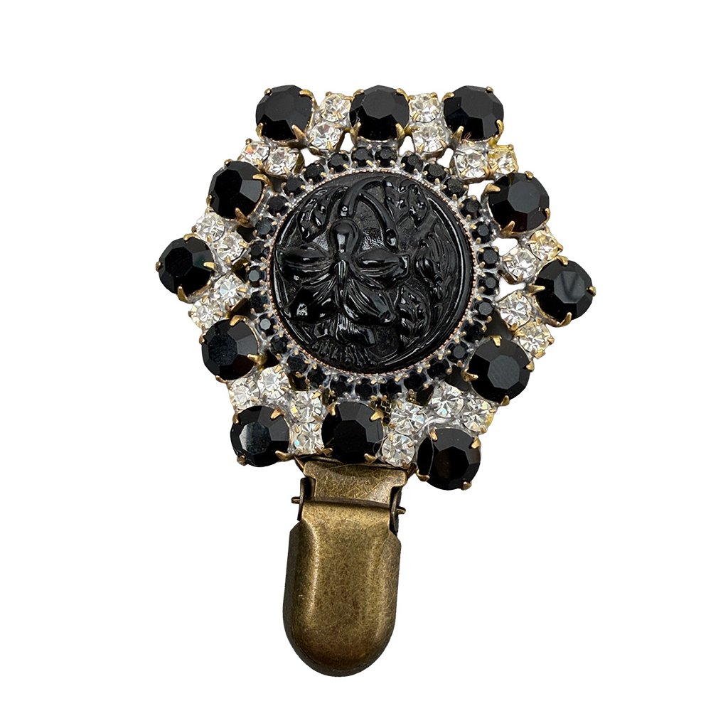 Brooch with Black Floral Motif