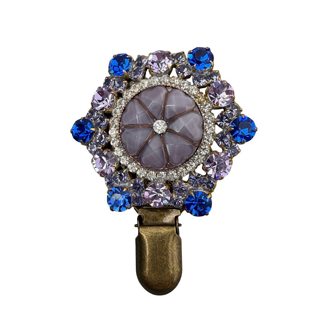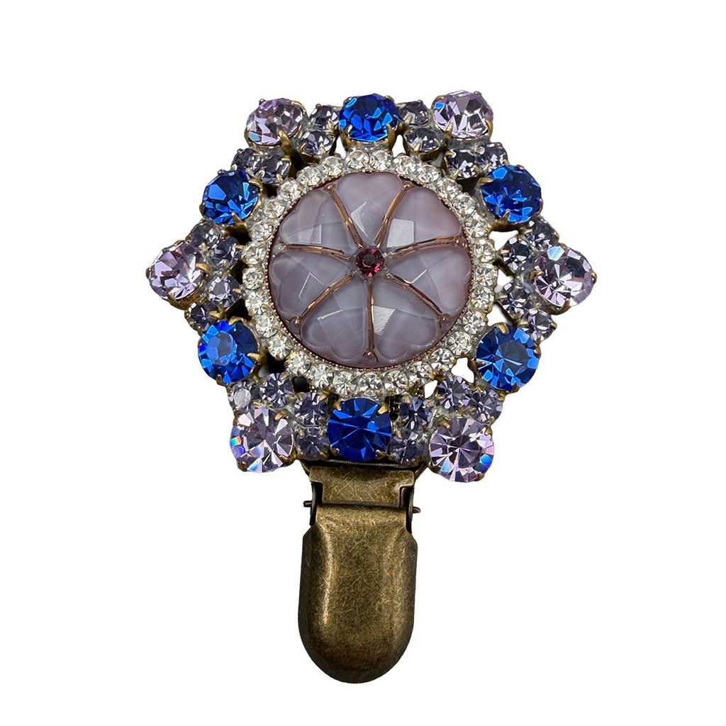 Elegant brooch with a floral seven-leaf clover in retro style. The brooch is made from original glass stones traditionally produced in Jablonec. The brooch has been additionally modified for use in a dog show ring. An exhibition number can be attached to it.